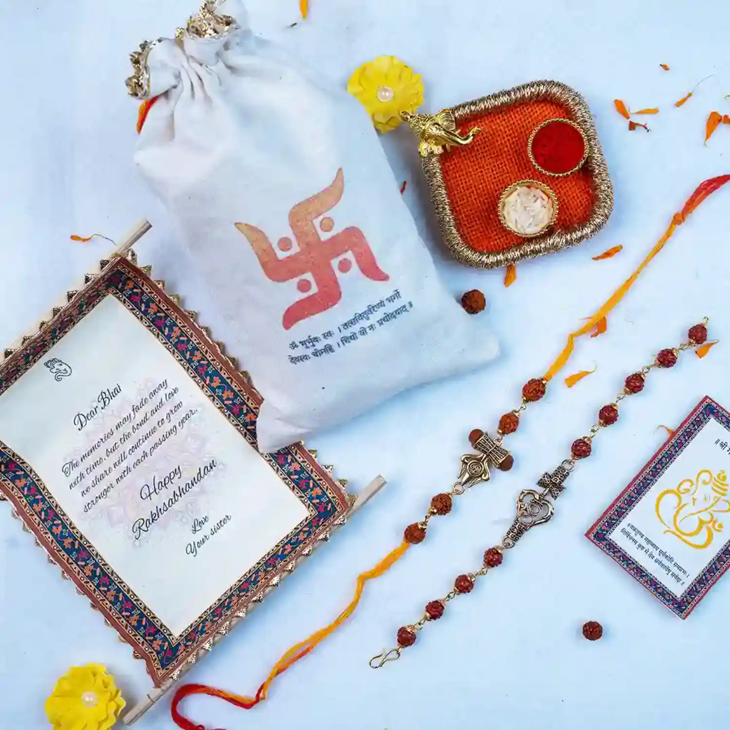 Celebrate Rakhi with the Divine Shiva Rakhi set, resonating with Lord Shivas divine energy.