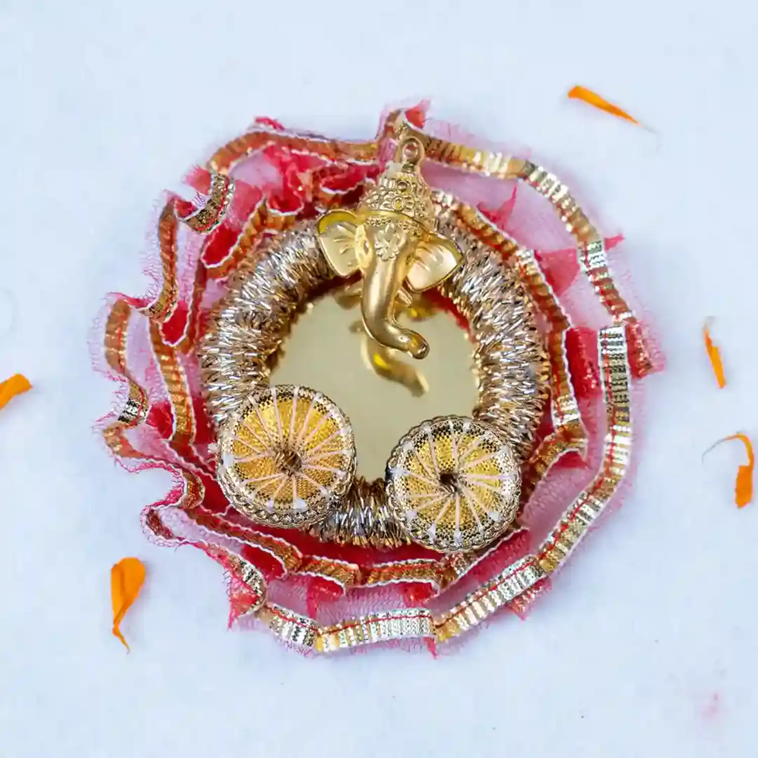 Ganesha Thali with Red Pacchi Bhaiya Bhabhi Rakhi