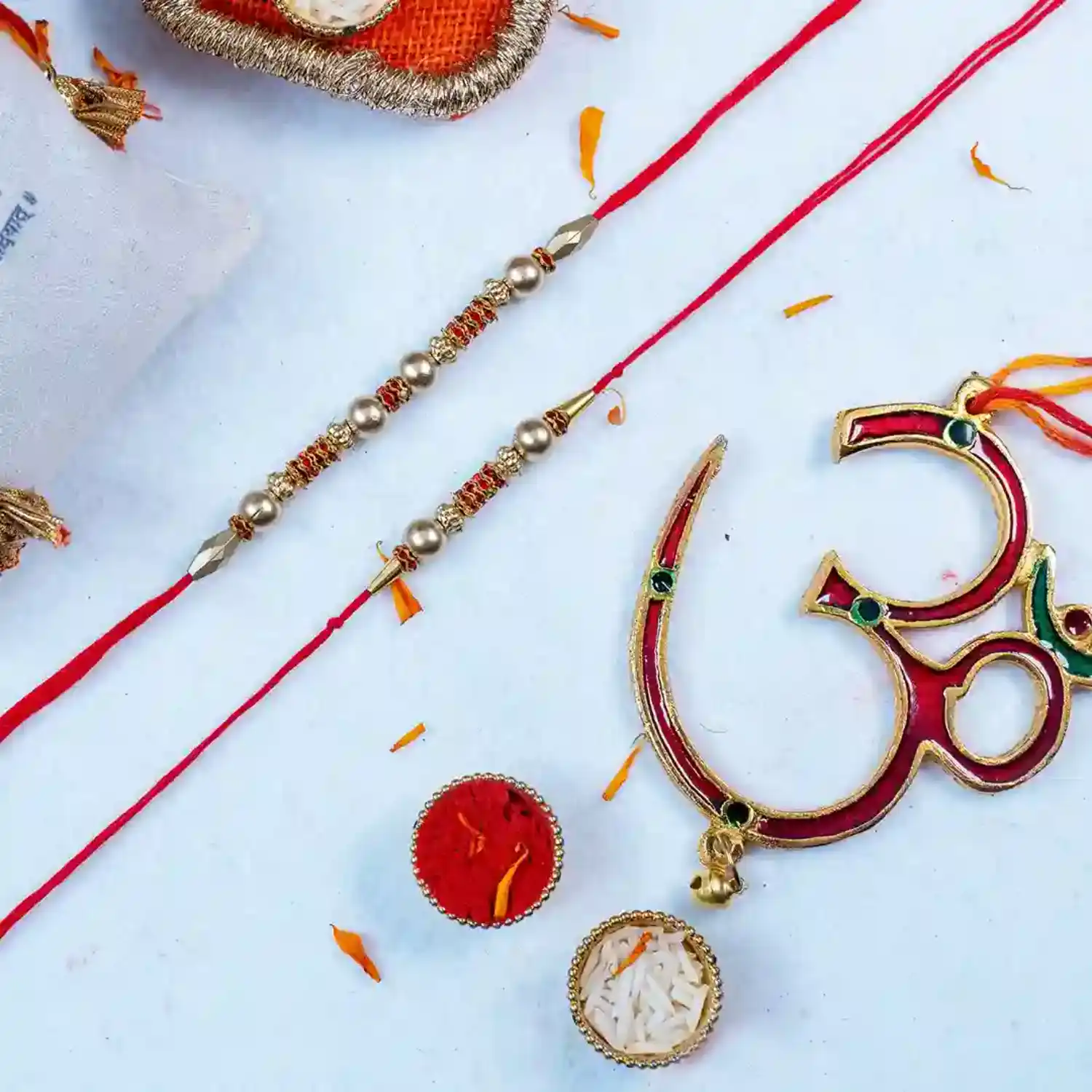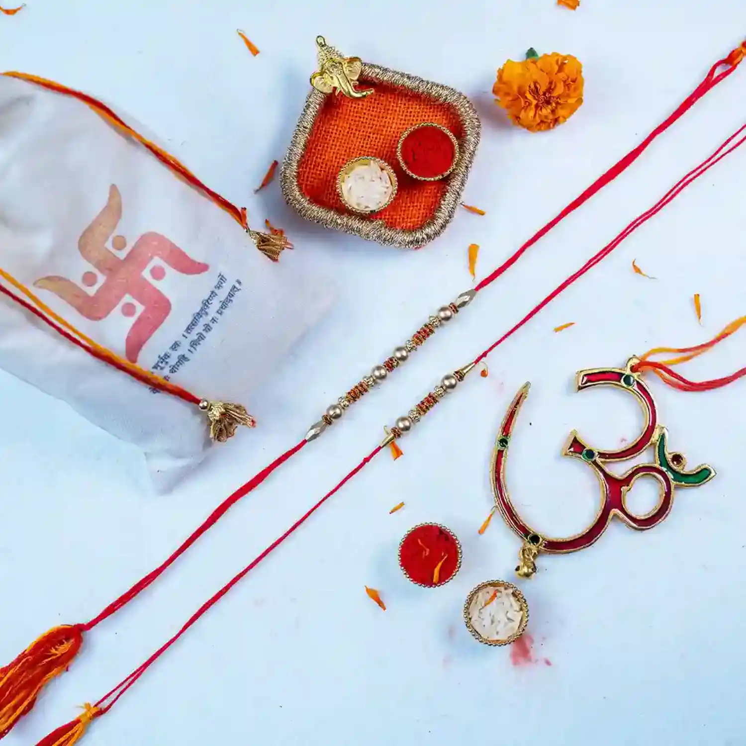 Celebrate Rakhi with this divine Om Sutra Rakhi set, protection and prosperity combined.