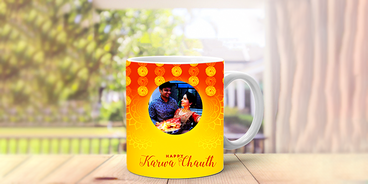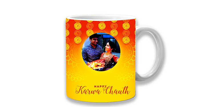 Personalised Happy Karwa Chauth Printed Orange Color Ceramic Mug