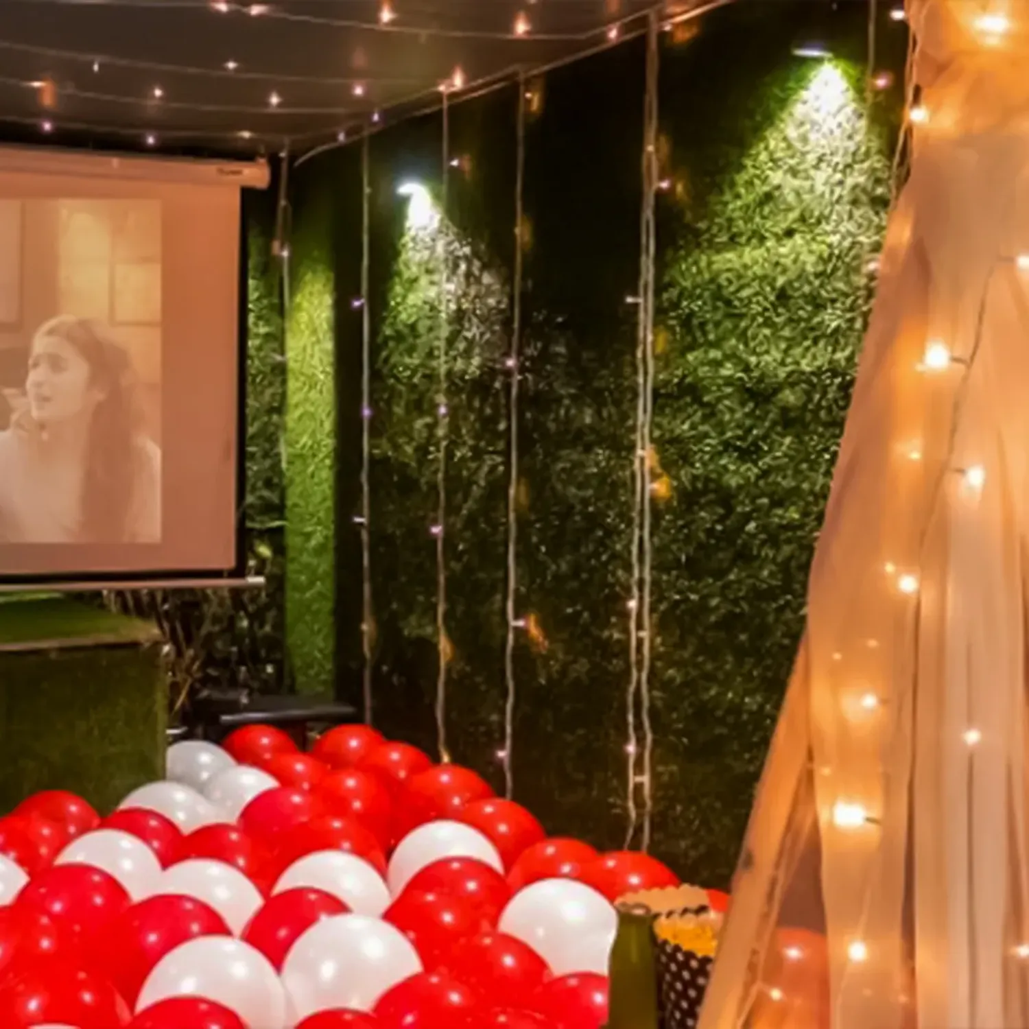 Surprise your better half by taking them for a candlelight dinner in a beautiful love nest theme area, perfectly decorated as per your needs. Along with that watch a movie too in a private setup.