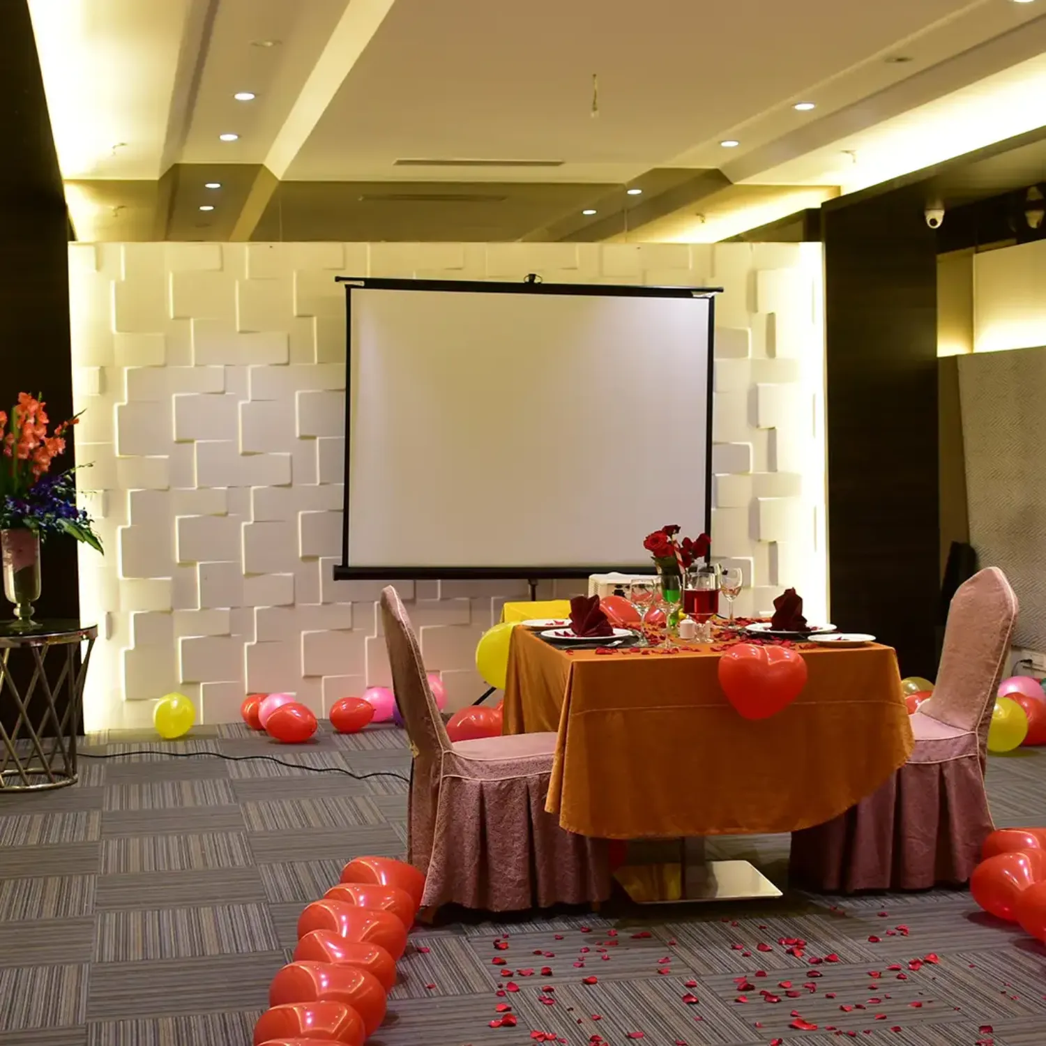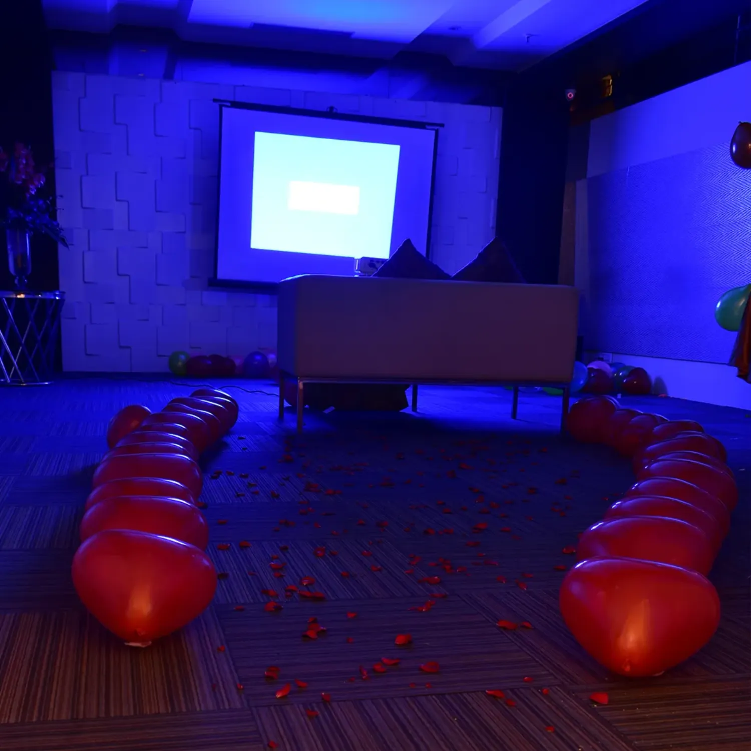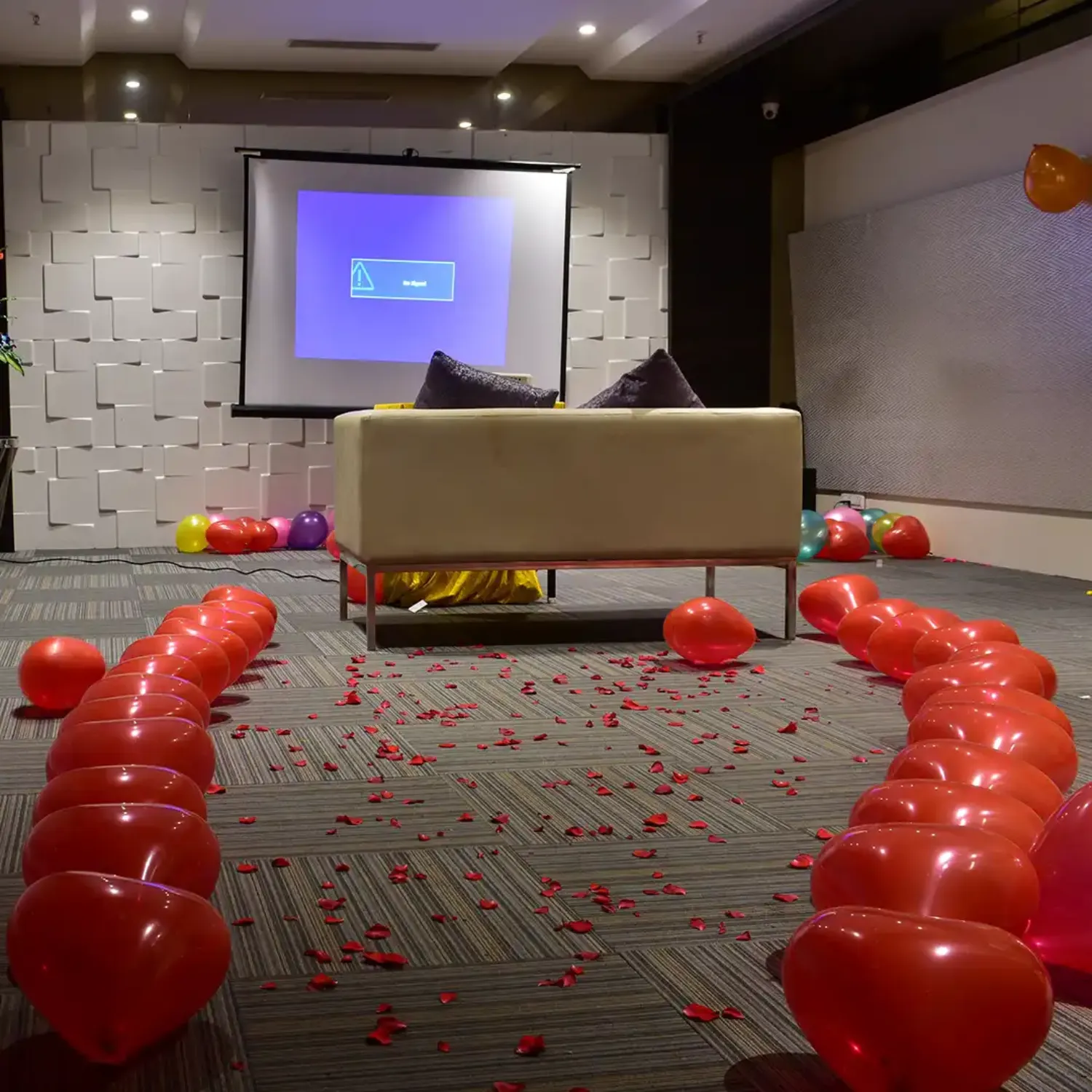 Surprise your better half by taking them for a candlelight dinner in a beautiful love nest theme area, perfectly decorated as per your needs. Along with that watch a movie too in a private setup.