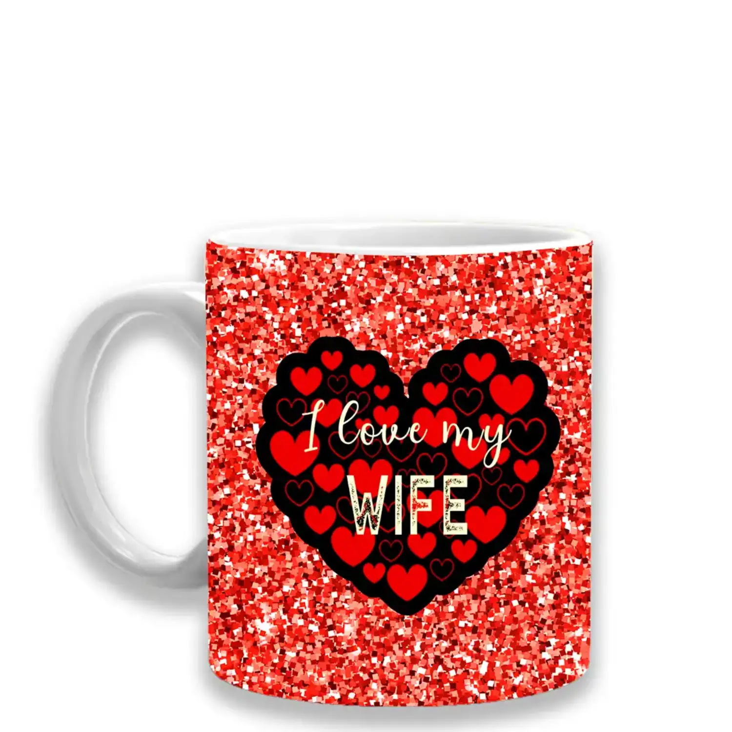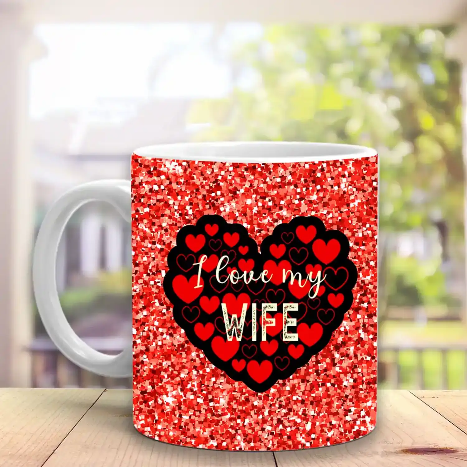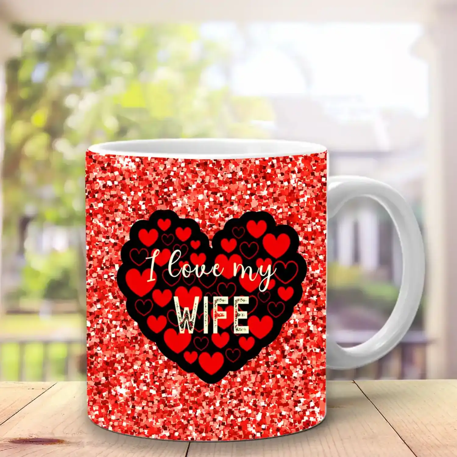 I love my wife printed ceramic mug to make her feel loved.