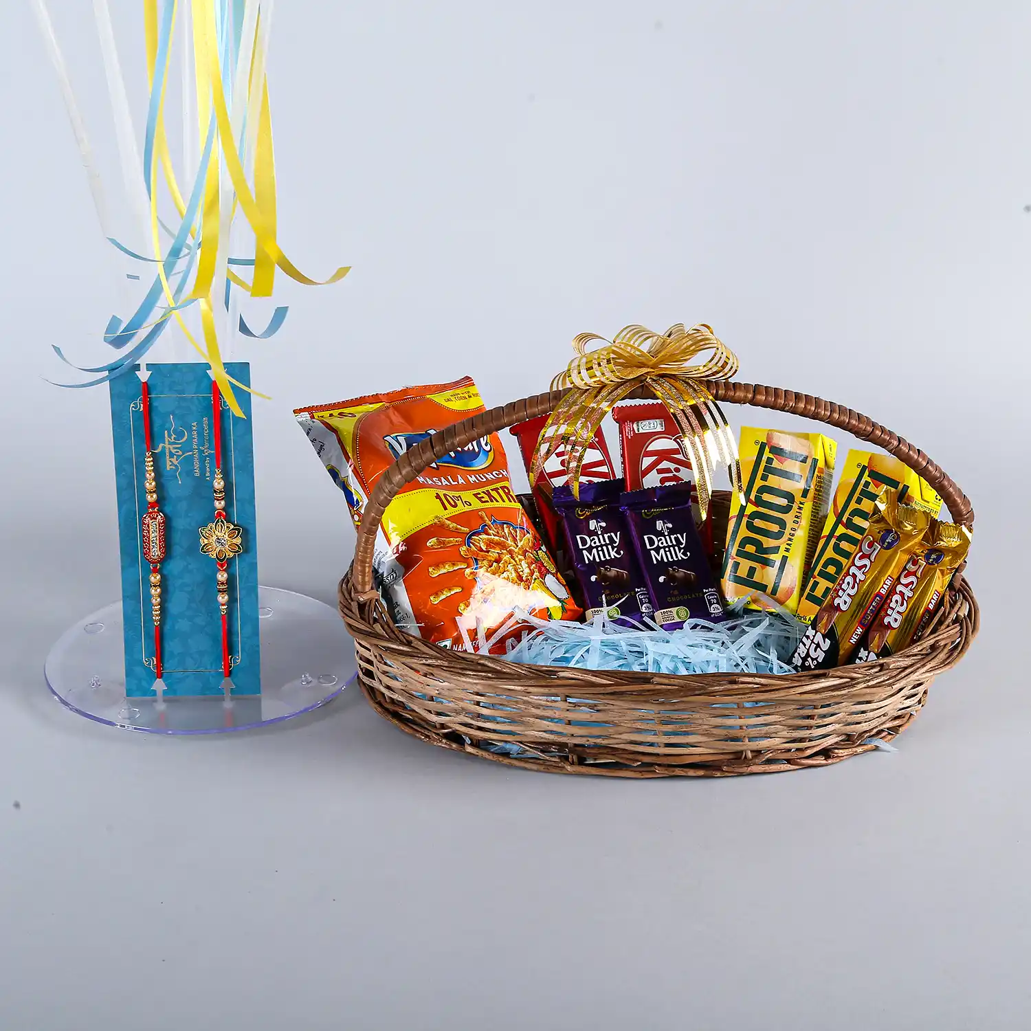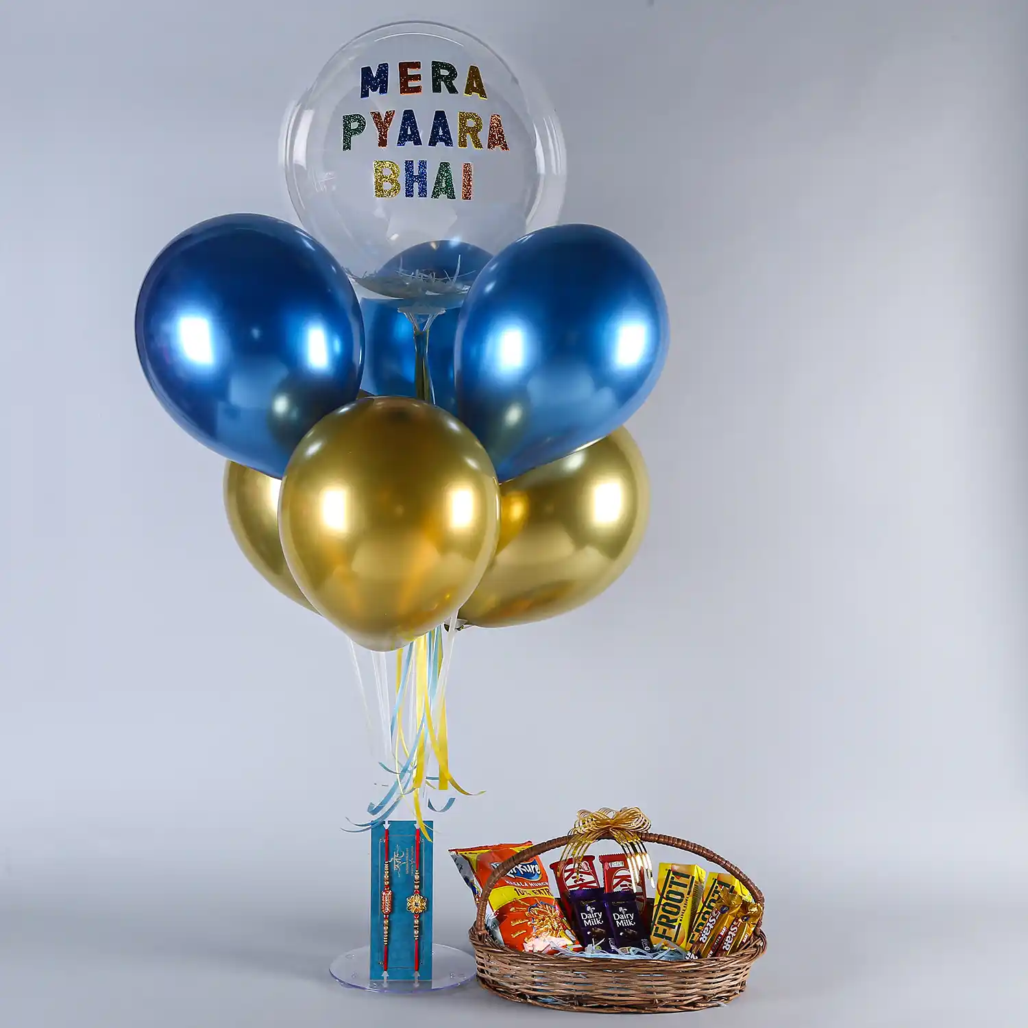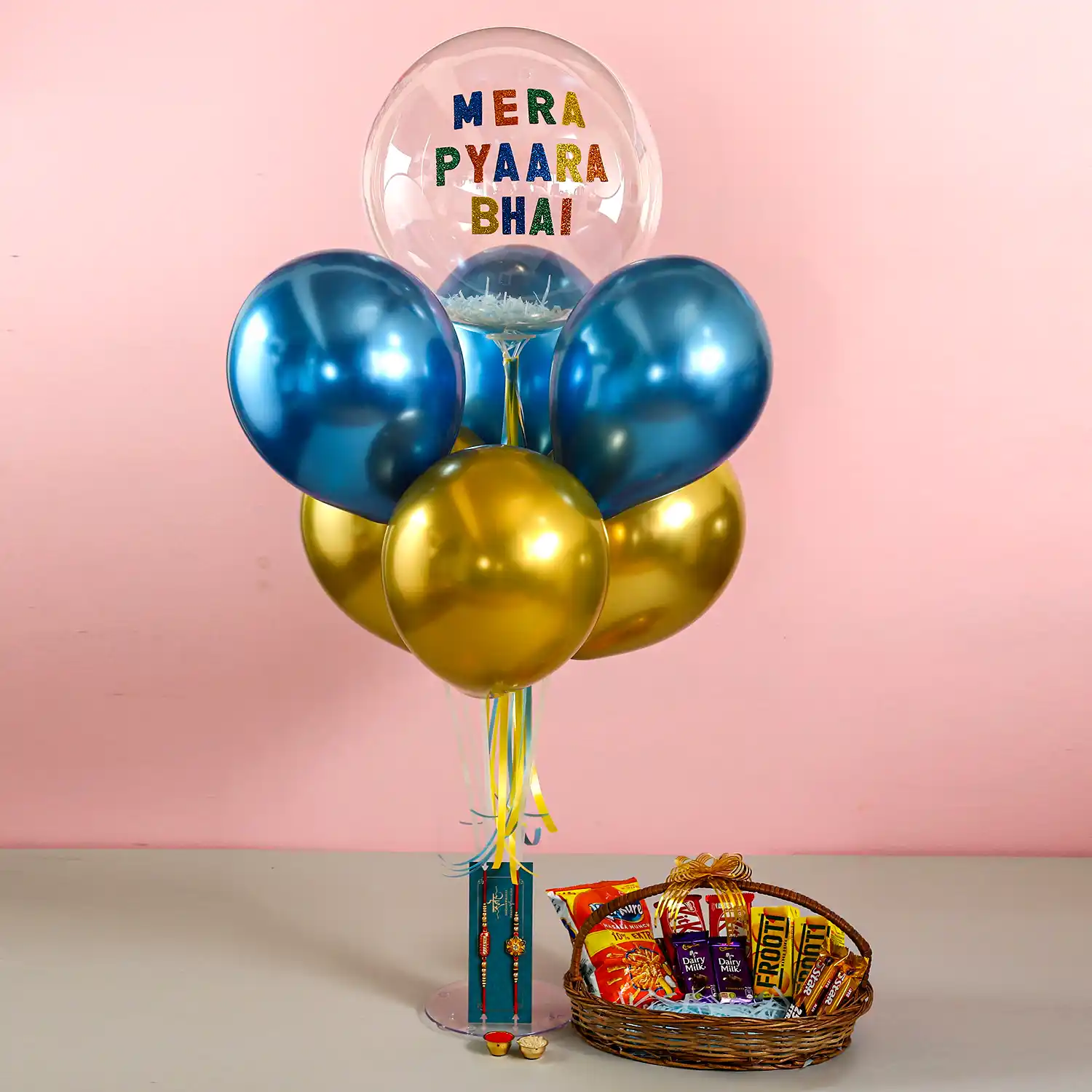 Get an exciting surprise for your brother this Raksha Bandhan. This balloon surprise hamper contains all those things that your brother will love. Get your hands on this amazing product to bring a million-dollar smile to your brother’s face. The chrome balloons and eatables will add a spark to your celebration.
