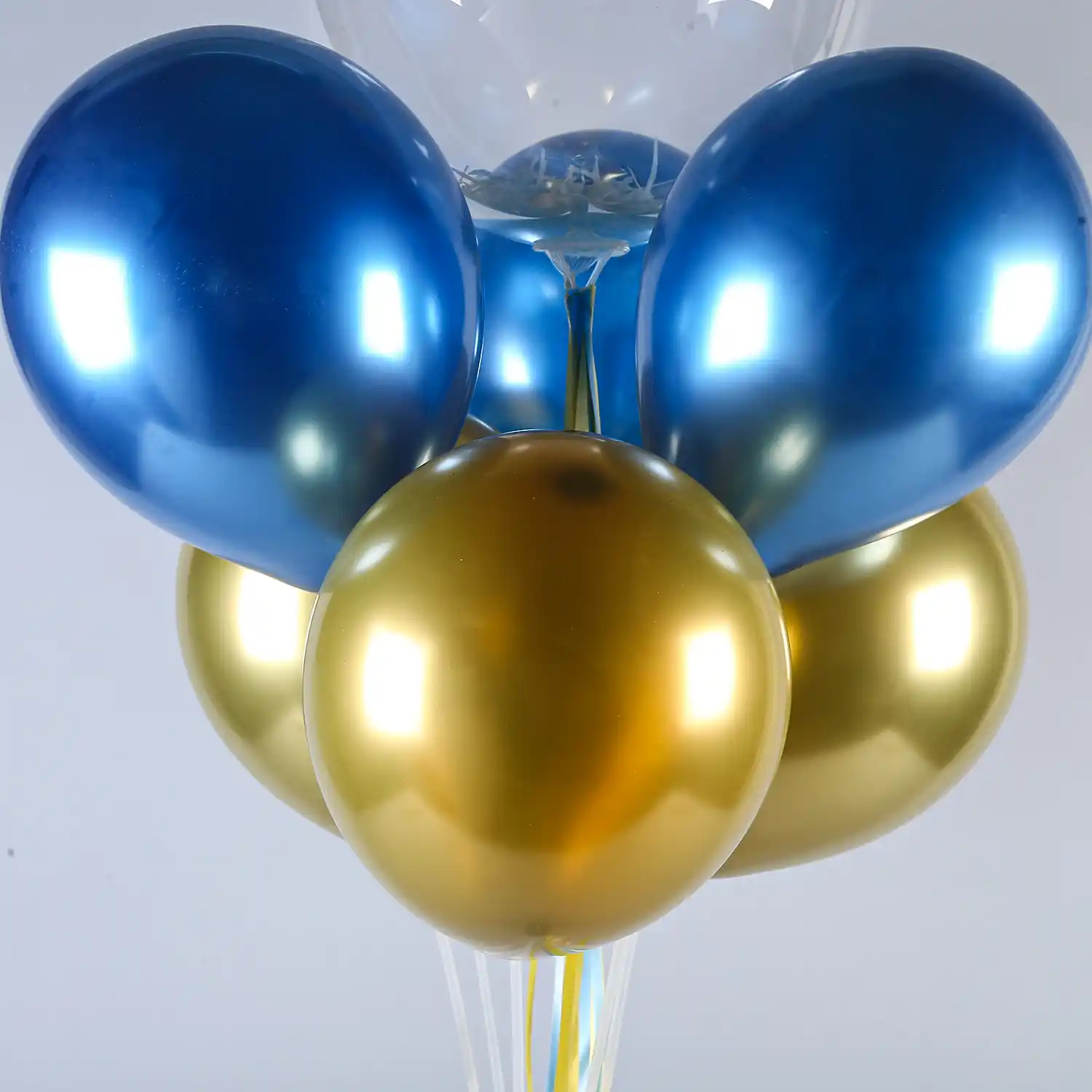 • 3 Golden & 3 Blue Chrome Balloons