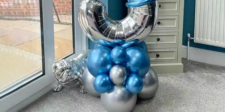 Greet your loved ones with this blue and silver balloon bouquet!